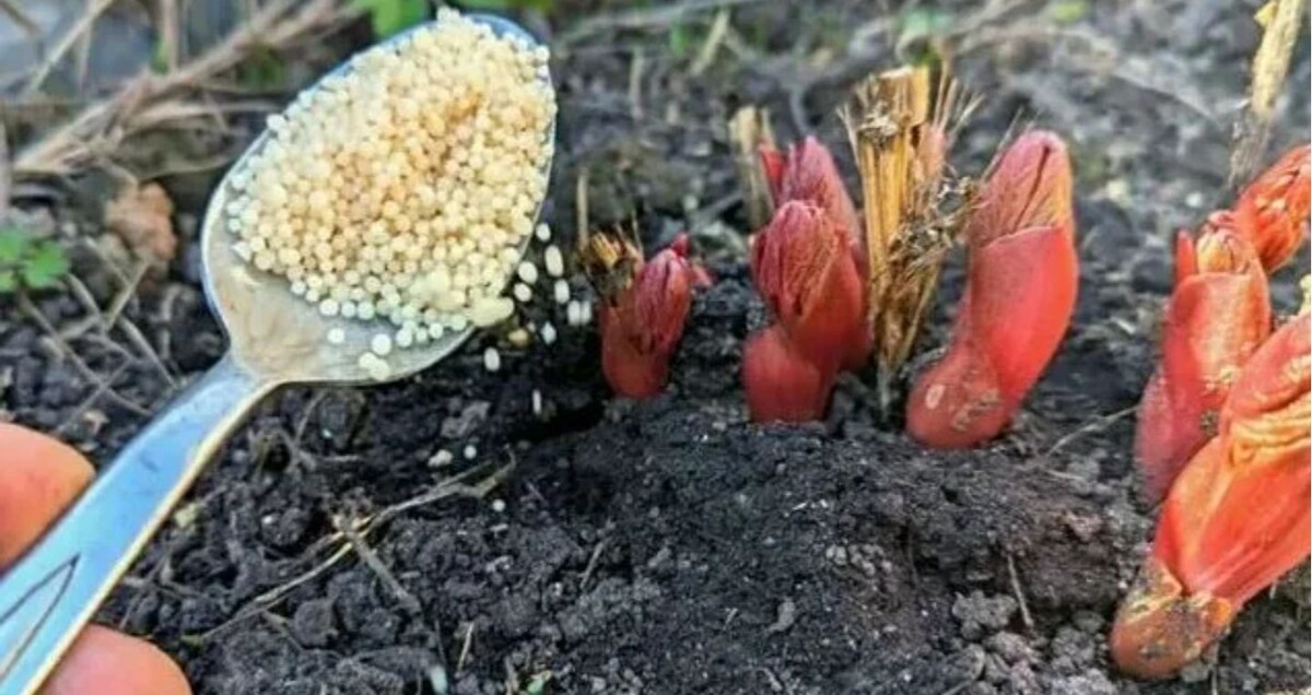 Технология применения: Гранулы равномерно распределяют по предварительно увлажненной почве по окружности, отступив 20-25 см от центра куста. Это важно для предотвращения химического ожога ростовых почек и запасающих корней, расположенных у основания стеблей. После рассыпки удобрение слегка заделывают в верхний слой грунта и проводят дополнительный полив для активации процесса растворения. - Органические удобрения (мягкое пролонгированное действие): Хорошей альтернативой служит настой коровяка.
